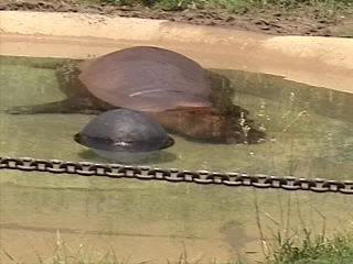 This Hippo has gotta be dead. They can only hold their breath for about 5-6 minutes. It never came up to breath. & that's not enough water for a Hippo.